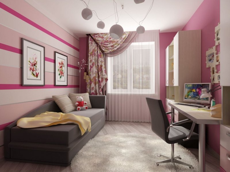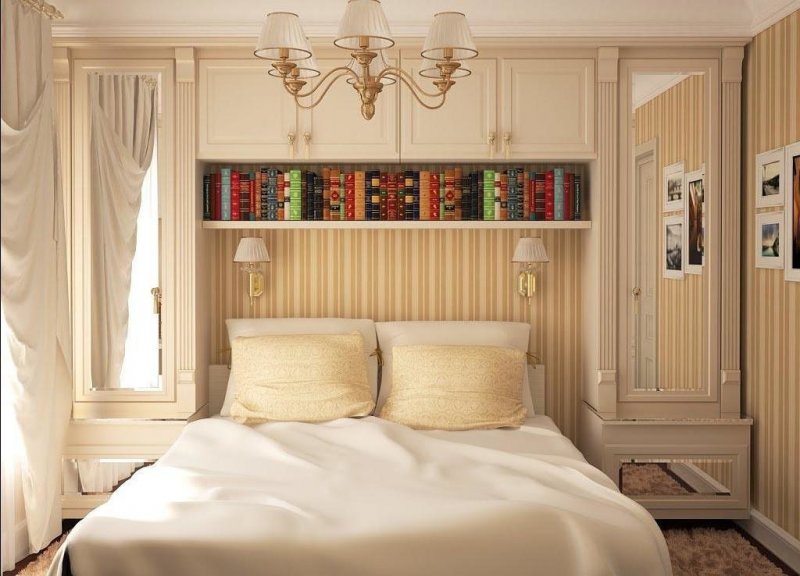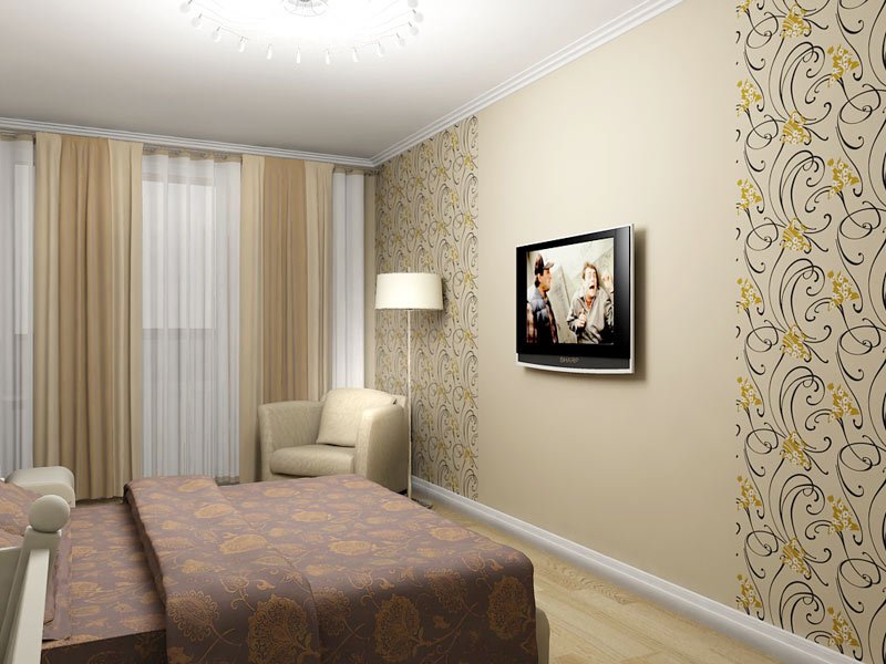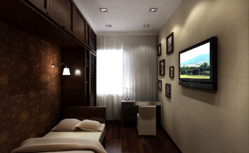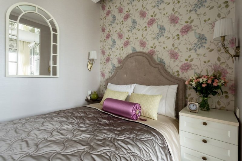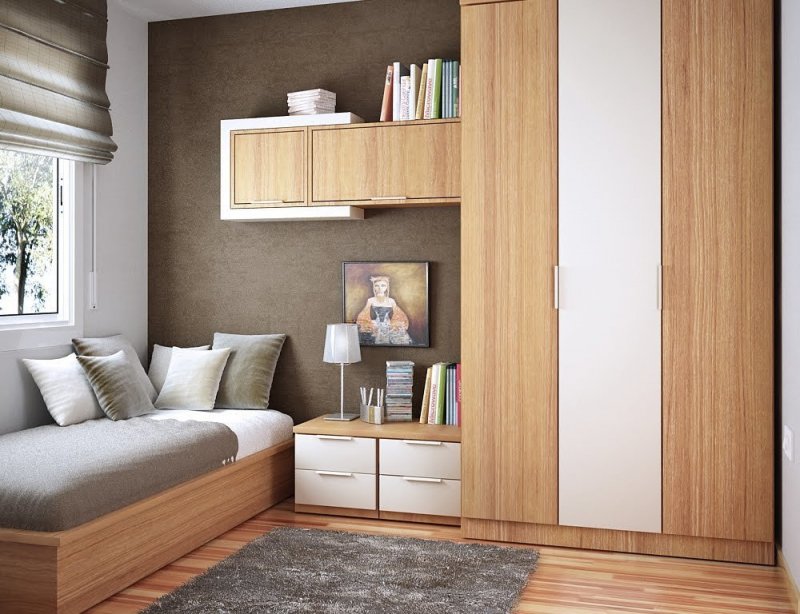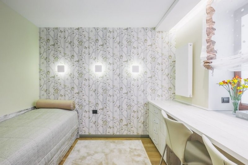 Маленькие комнаты, как правило, имеют такие же небольшие окна. Они не обеспечивают помещение естественным светом в тех количествах, которые ему нужны. Исправить эту оплошность можно с помощью искусственных источников света, светлых обоев, зеркальных поверхностей. Чтобы в помещении стало светлее и «теплее» используют комбинации пастельных оттенков и коричневого, белого, розового, персикового. Стильным и неординарным решением станет покупка обоев с особым покрытием — минеральным напылением (идеально подойдёт крошка кварца).