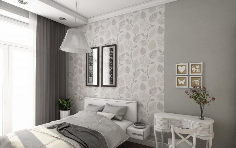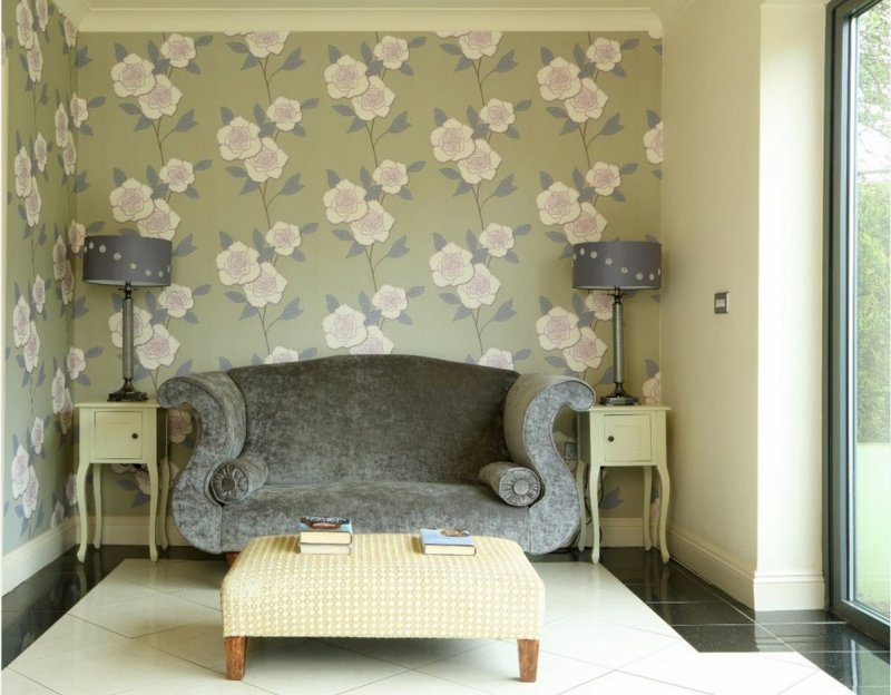 Чередование осуществляется с использованием как двух, так и трёх видов обоев. К сожалению, второй вариант не подходит для маленьких комнат, так как излишняя пестрота им не пойдёт на пользу. Комбинировать можно разные обои: однотонные с цветочными или геометрическими рисунками, полосатые или клетку с флористикой, абстрактные с разными мотивами. Для маленьких комнат лучше остановиться на одноцветных обоях, которые будут оттенять яркость цветочного узора или сочность широких полосок.