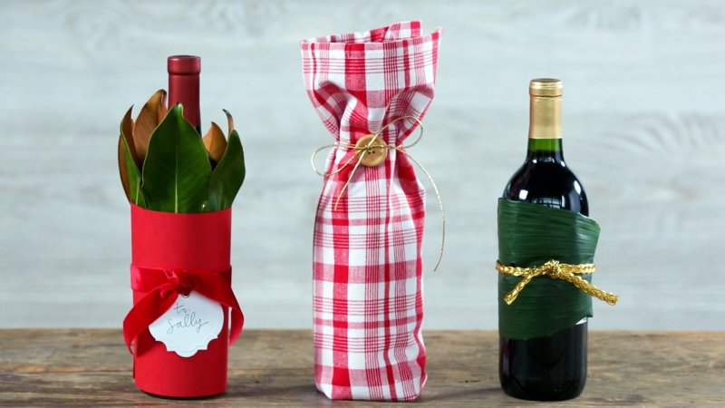 Для оформления подарочных бутылок, ваз существует множество видов специальной бумаги, вытянутые кулёчки с ручками. Стандартный вариант обёртки можно разнообразить различными способами. Самый простой – сделать весёлые завитушки у горлышка. Для этого необходимо надрезать свободные края и закрутить ножницами. Упаковка подойдёт для презентов на новогодние праздники, пасхальных вин.