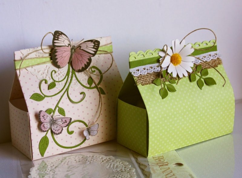 Сделать креативную упаковку для небольшого подарка очень легко. Существует множество схем и вариантов изготовления. Из картона, помимо стандартного прямоугольника, получатся отличные треугольники, трапециевидные, фигурные изделия. Верхушку-застёжку можно сделать в виде сердечек, цветочка, зафиксировать лентами, кружевом или оставить открытой.