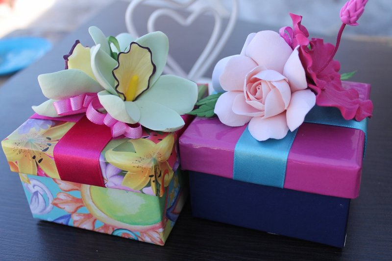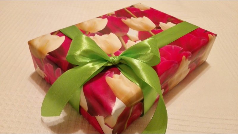 В качестве обёртки можно использовать фактурные обои с цветочным орнаментом, нотную бумагу. Украсит коробочку большой атласный бант, бирка в виде восьмёрки. В качестве декора подойдут весенние цветы, букеты или отдельные бутоны. Такой подарок будет не только оригинальным, но и ароматным.