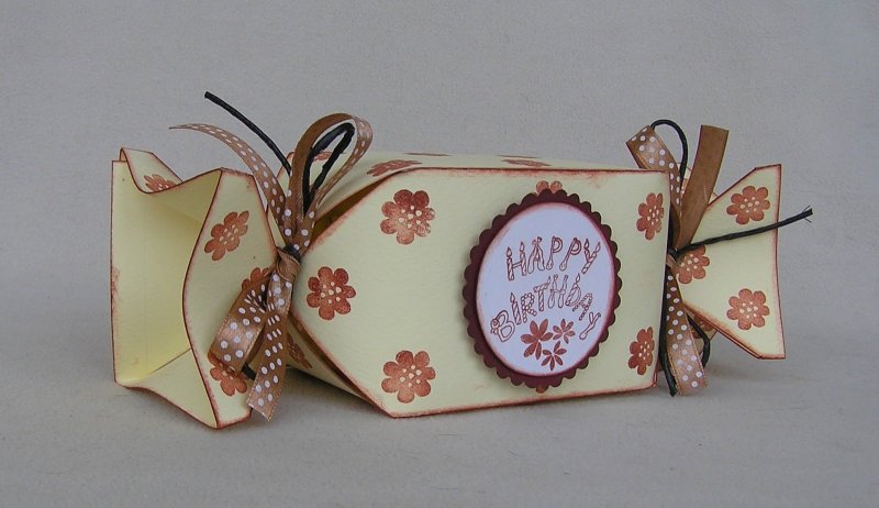 Если сувенир расположен в цилиндрической коробке, то его можно завернуть по аналогии с конфетной обёрткой, способом односторонней перекрутки, называемым «саше». Таким же образом оборачивают «Трюфели». Характеризуется метод тем, что сначала у обёртки формируются складки уголков, которые позволяют свернуть презент в форме мешочка.