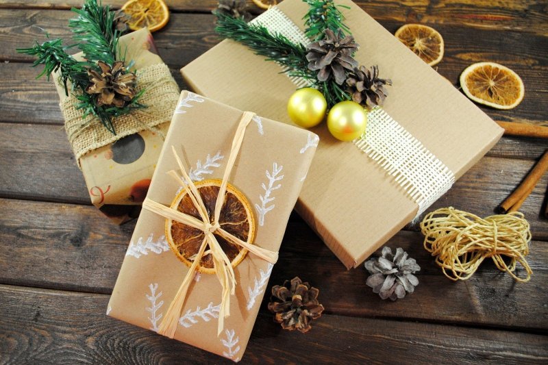 Натуральные украшения следует подбирать в зависимости от времени года и темы праздника. Также следует учесть материал упаковки. Лучше такой декор будет смотреться на природной обёртке, например, крафтовой бумаге, текстиле, картоне.