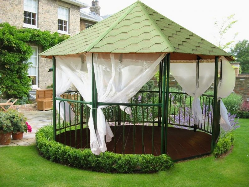 Для обустройства беседок используются следующие разновидности материалов: