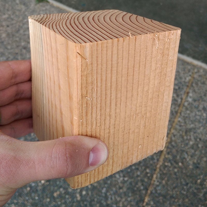 Ножки выполняются из шести почти квадратных брусков, высотой 105 мм., но при желании их допустимо сделать более высокими. Чтобы придать деталям красивую форму, на короткой стороне отмеряется 30 мм., на длинной – 50 мм., образовавшийся угол спиливается, острые кромки зашлифовываются.