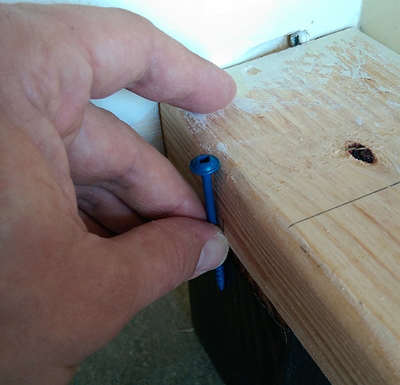 Гвозди, шурупы располагаются в нескольких сантиметрах друг от друга по диагонали.
