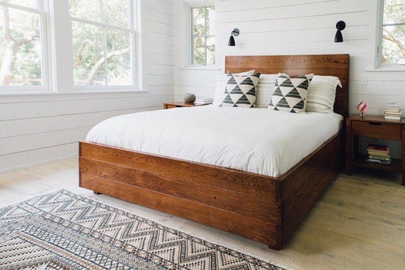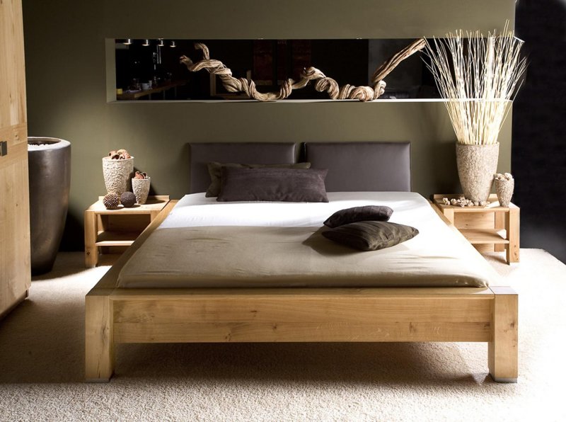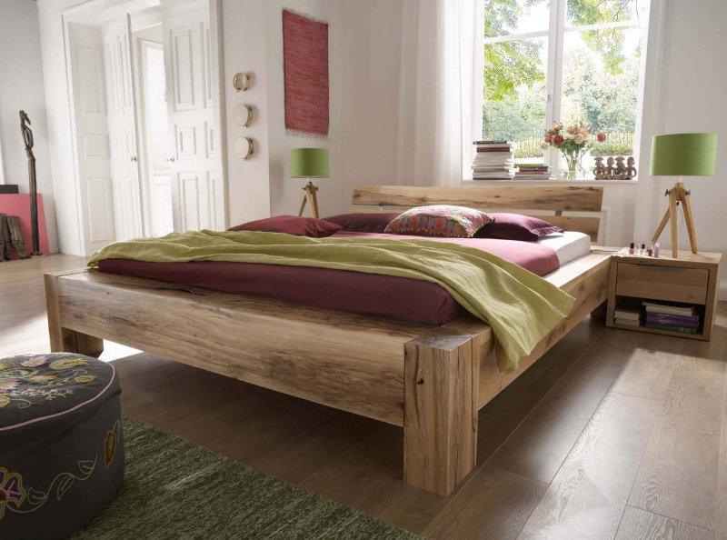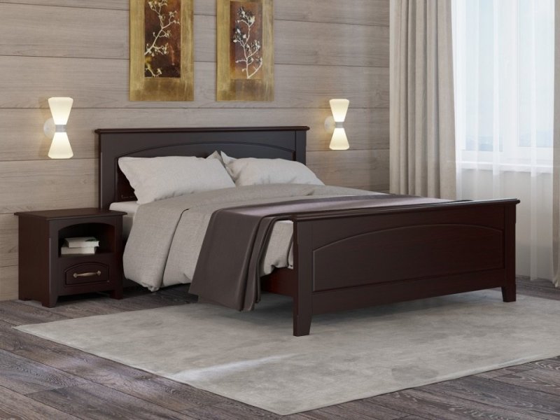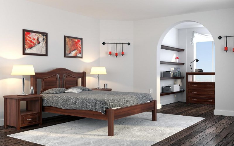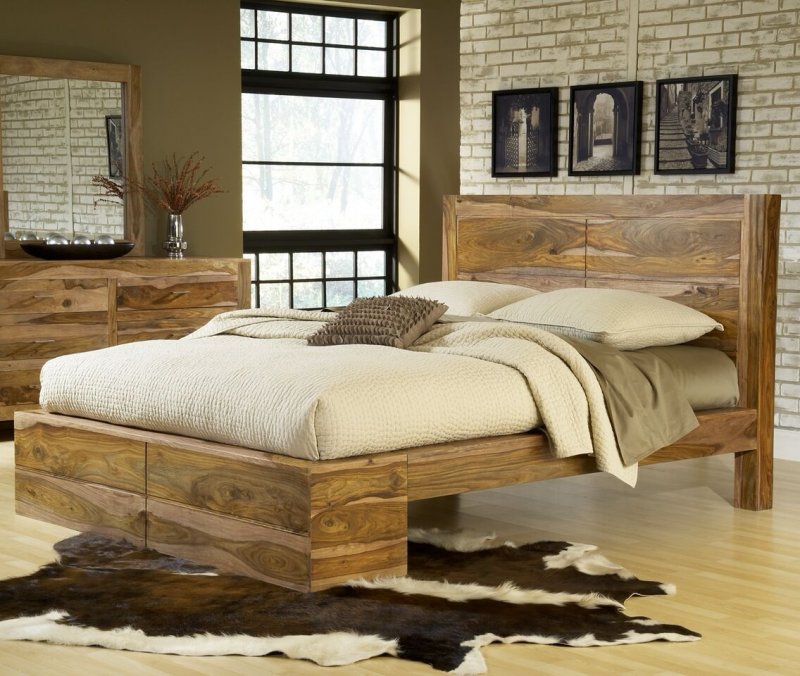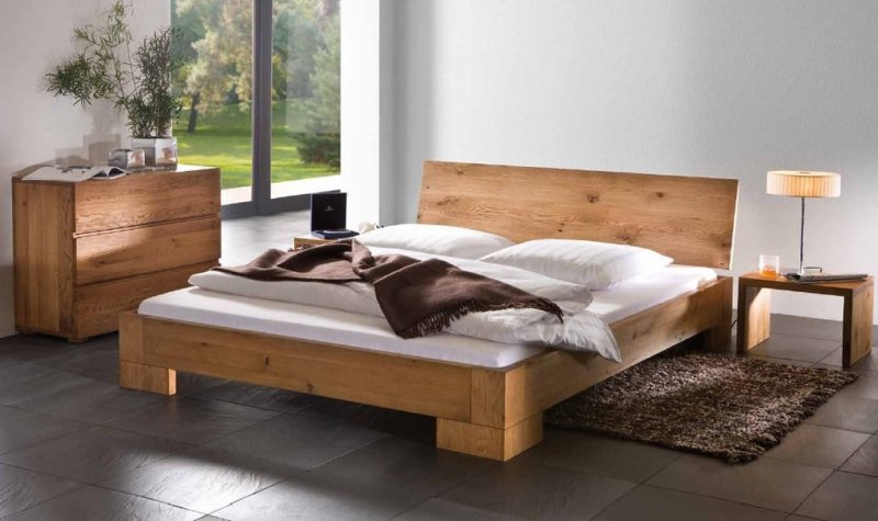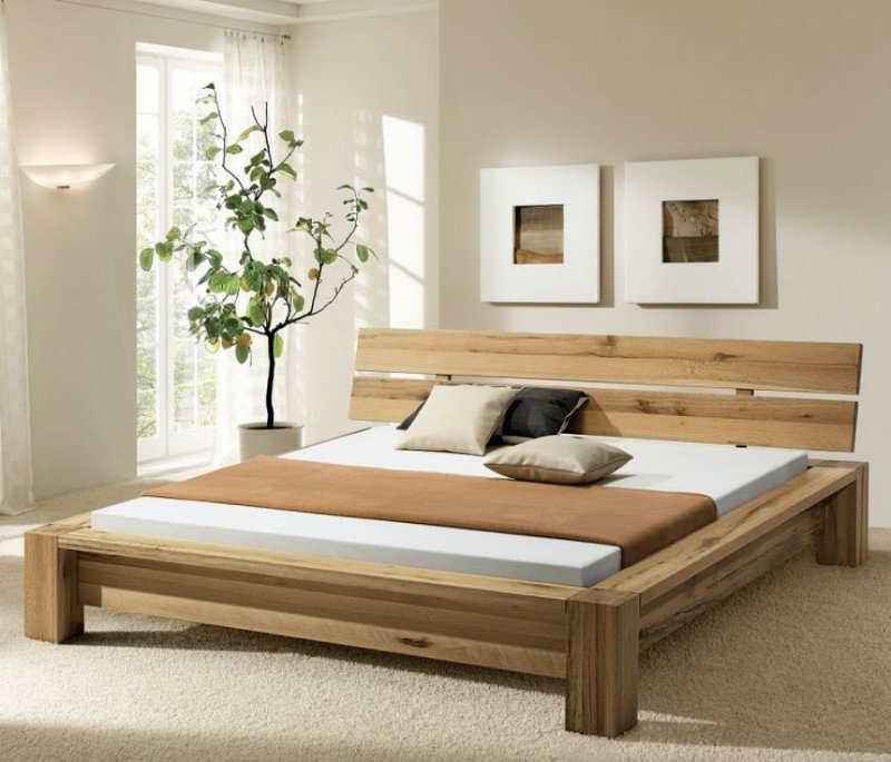 Древесина, наилучшим образом подходящая для создания кровати, имеет среднюю либо высокую плотность – от 560 до 770 кг/м. кв. и выше. Несущую раму выполняют из березы, лиственницы, сосны, декоративные элементы – из ели, венге, мореного дуба. Хвойные деревья наполняют помещение своеобразным «лесным» запахом, долгое время оздоравливая атмосферу, создавая уют.