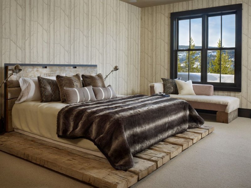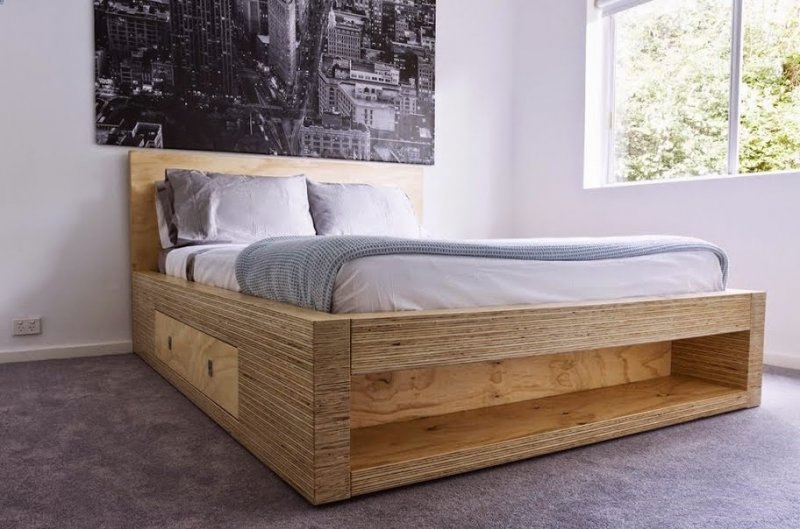 Конструкцию, расположенную на помосте, можно встраивать в нишу либо размещать у стены, по центру спальни, дополнять выдвигающимися ящиками, коробами для хранения постельных принадлежностей. Подиум состоит из каркаса, обшиваемого ОСБ-плитами, листами фанеры. Готовая верхняя плоскость не должна скользить – иначе матрас будет сползать с нее.