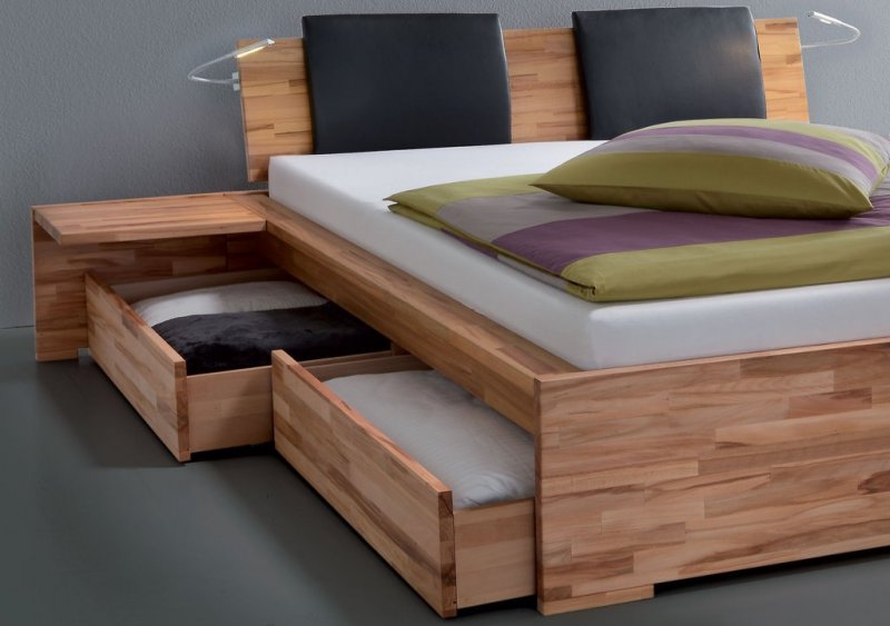 Для удобства, практически любую конструкцию оснащают множеством выдвижных ящиков для хранения постельного, нательного белья.