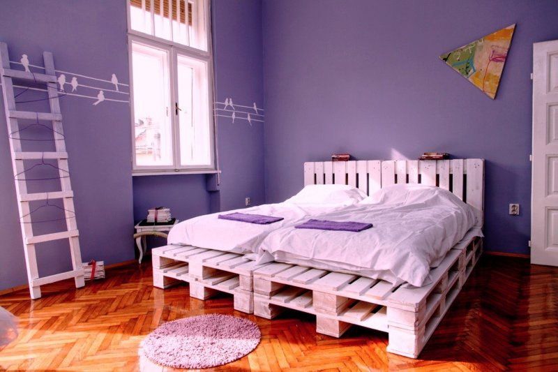 Дизайн спальной мебели из подручных материалов всегда уникален. В некоторых случаях подходящей модели не существует в продаже, а изготавливать ее под заказ невероятно дорого. Например, детская двухъярусная или трехъярусная, с высокими бортиками, множеством лесенок, встроенных ящиков, при условии высокого качества материалов, креплений, защитных элементов, сравнима по стоимости с не самым старым автомобилем. Если же дома имеются нужные инструменты, ее возможно сделать самому. Придется закупить лишь бруски, доски, матрасы, крепежные элементы, что выйдет в разы дешевле.