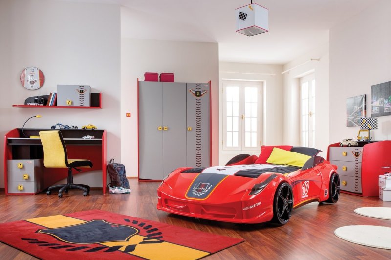 Уникальные конструкции, служащие спальным местом, так и пространством для сюжетных игр, выполняются самостоятельно либо под заказ. Это может быть замок принцессы или пиратский корабль, гоночная машинка или карета, космический звездолет или роскошный шатер. При желании сюда монтируются лесенки, горки, качели.