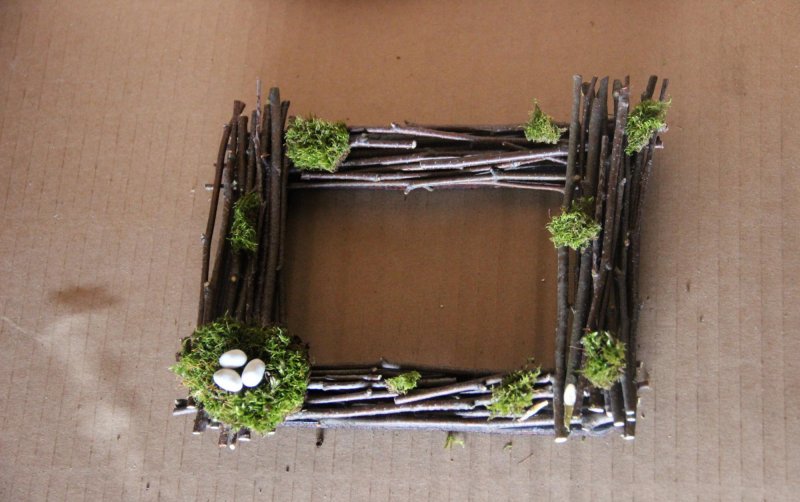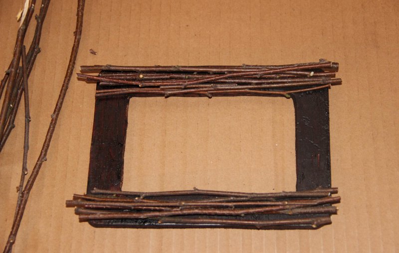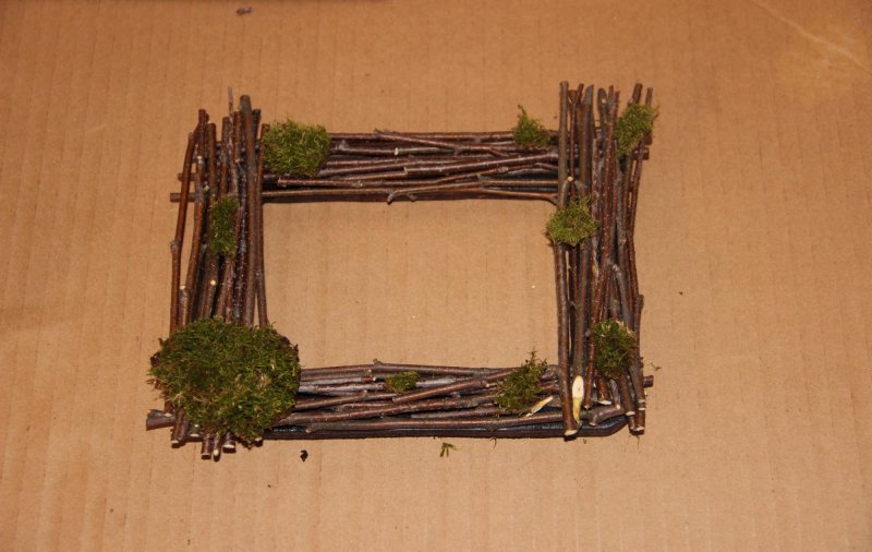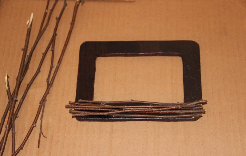 Процесс оформления обрамлений для фотографий, картин и зеркальных элементов схож. Для работы необходимо использовать веточки двух размеров: тонкие, толстые. Они должны быть полностью сухими. Прутья вербы или ивы со скользкой корой лучше не брать. Рассмотрим пошагово мастер-класс по созданию таких изделий.