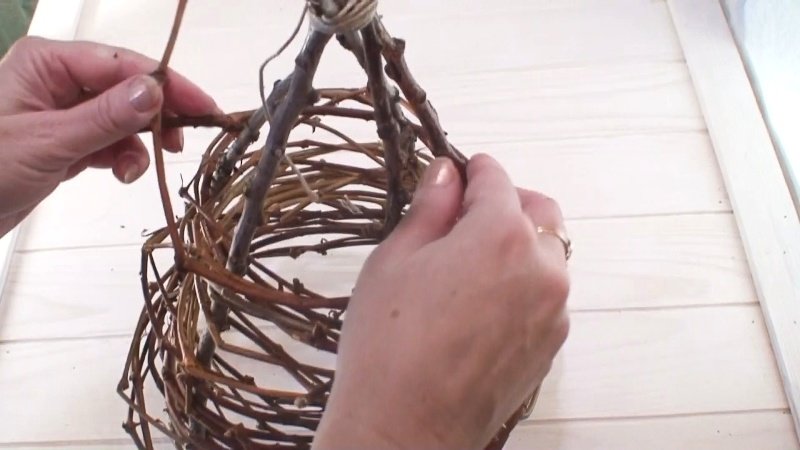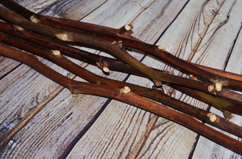 Для работы можно брать любую породу древесины. Подойдет березовая, ивовая, виноградная лоза, еловые, сосновые, лиственные, ветки ореха. Материал должен быть без листьев, гибким, не иметь сколов, трещин, повреждений, других дефектов. Желательно, чтобы волокна располагались в одном направлении. При необходимости берут раздвоенные, разветвленные варианты.