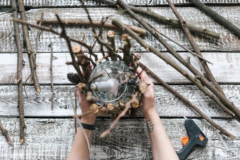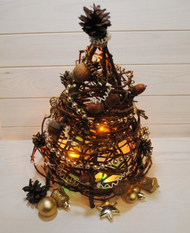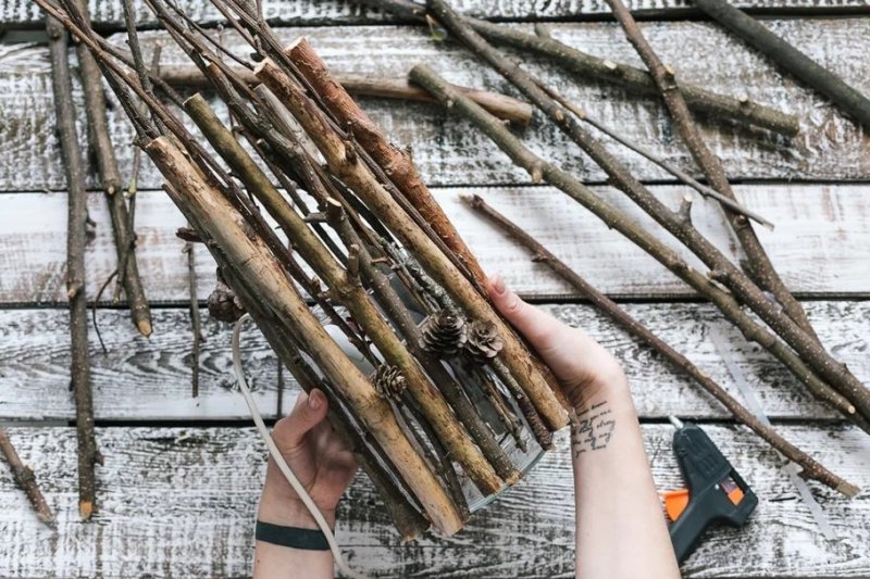 При помощи ветвей можно создать как самостоятельную конструкцию, так и украсить готовый предмет. Для наглядности рассмотрим несколько способов:
