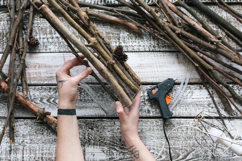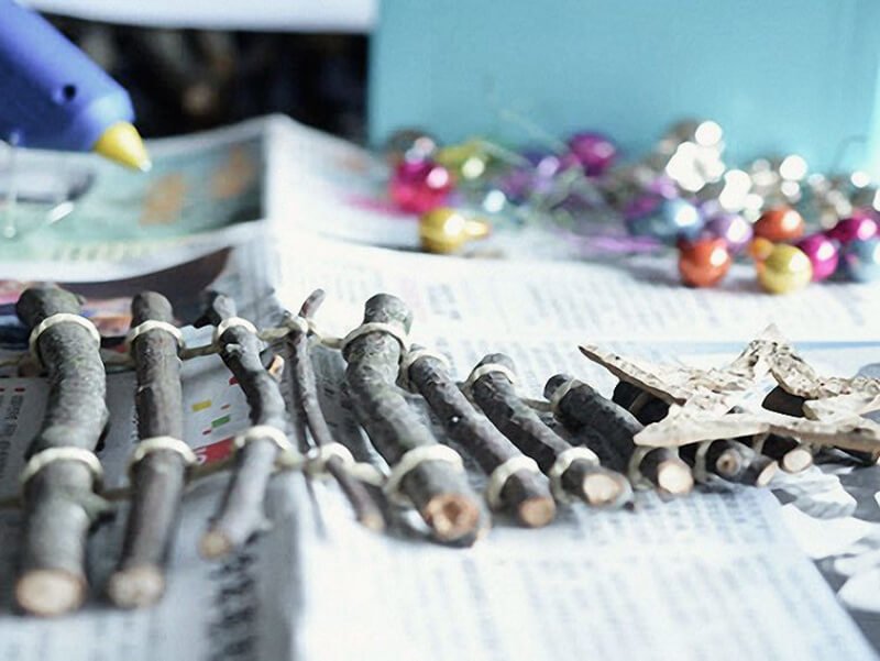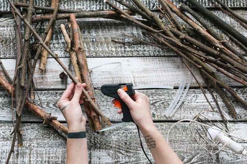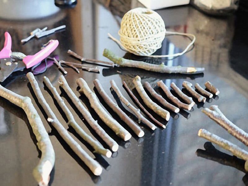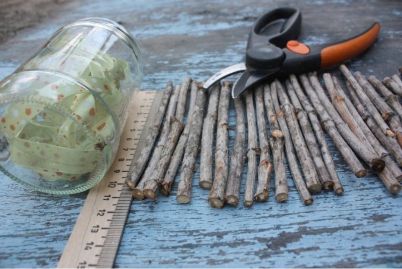 Из толстых веток. Для изготовления такого изделия потребуется немного времени и усилий. Процесс заключается в следующем: