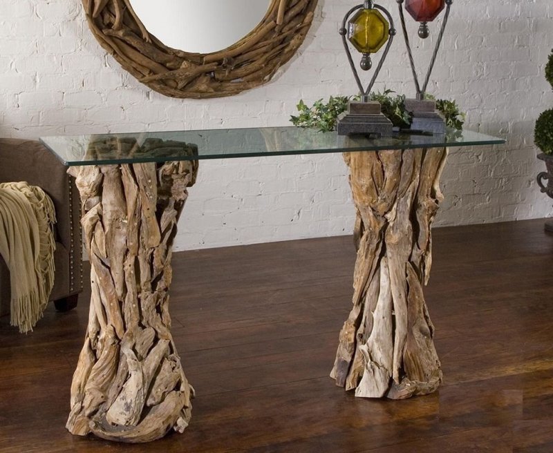 Существует масса оригинальных идей по созданию уникального дизайна аксессуаров. Достаточно хорошо приглядеться и ассоциативная память сама подскажет подходящий вариант. Возможно, ветвистая форма напомнит животного, сказочный персонаж, любой предмет домашнего обихода. Также корни и коряги можно использовать как дополнение композиции. Область применения будет зависеть от прочности, размера, формы. Из больших элементов выйдут уникальные клумбы, мостики, лавочки для сада.