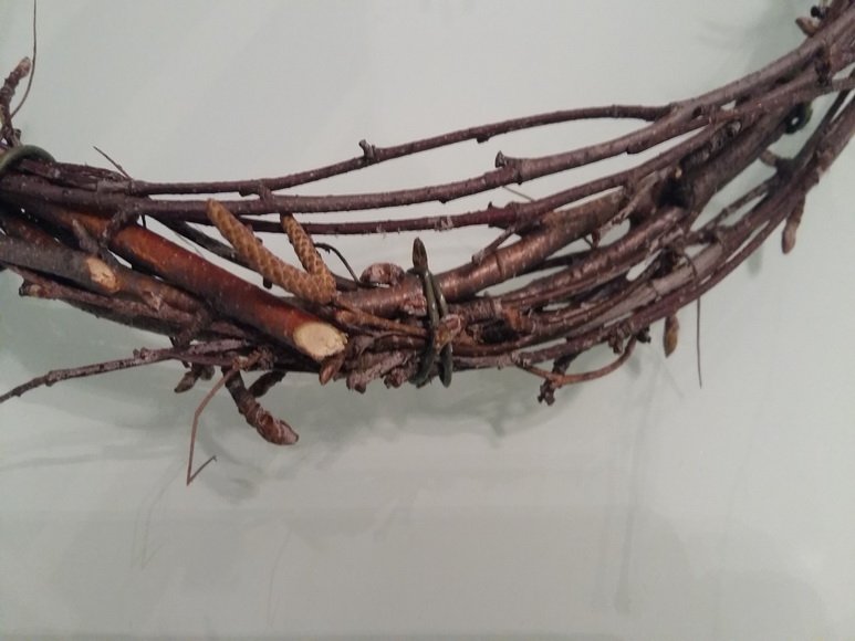 Для изготовления панно лучше подбирать гибкие ветки ивы, которые хорошо поддаются моделированию. Основой будет любая фигурная, прямая дощечка или участок стены. Крепим детали по задуманному плану с помощью скоб, саморезов, клея. Металлические элементы затираем в цвет древесины шпаклевкой, замазываем глиной.