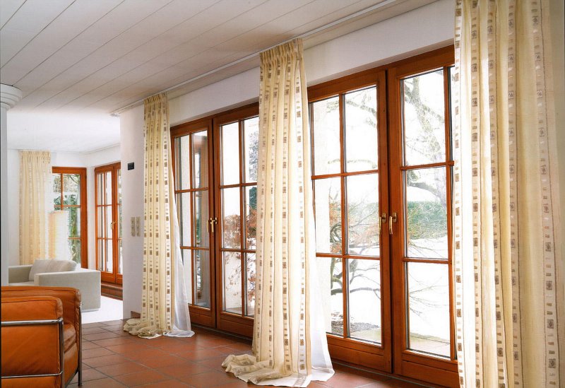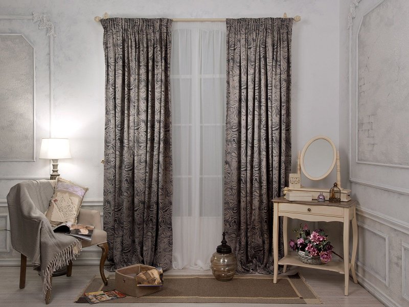 Максимально длинные шторы, которые достигают напольного покрытия или ниспадают на него — отличный вариант для жилых комнат. Они подчеркивают индивидуальность вкуса хозяев, способствуют необычной стилизации помещения. Одним из важнейших преимуществ таких моделей является визуальное увеличение высоты стен. Кроме того, при подборе ткани, отличающейся по цвету от отделки, можно добиться визуального разделения комнаты на несколько зон и красиво выделить окно. К минусам шторок в пол относится быстрое загрязнение нижней части полотна. Поэтому уборку в комнатах, где будут вешаться такие портьеры, нужно проводить ежедневно. В противном случае поддерживать привлекательность текстиля просто не получится. Идеальными для подобной подачи считаются следующие фасоны: итальянский и классический.