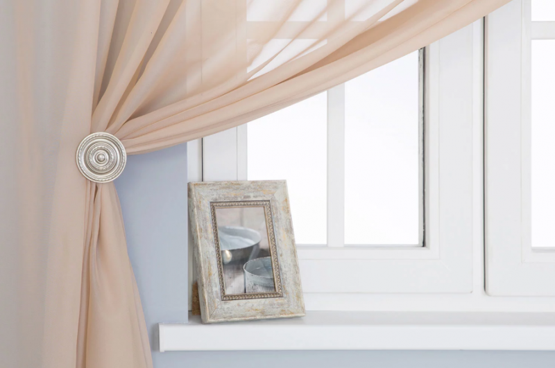 Напоминают классические шторы, но при этом они не могут быть сдвинуты по карнизу: такие модели фиксируются на одном месте. Для открывания окна их нужно отодвинуть к стене и зафиксировать на крюке или с помощью прихвата.