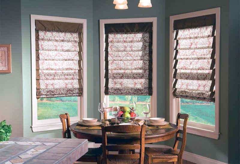 Хорошим решением для кухни могут стать рулонные шторы день-ночь. Наличие плотных и полупрозрачных полосок обеспечит простоту регулировки яркости естественного освещения.
