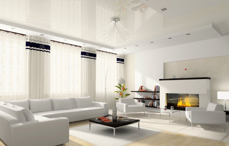 Классическим тоном для потолка является белый. Он сочетается с любым другим цветом из всей палитры. Вызывает светлые ассоциации, является признаком новизны, чистоты. Такое покрытие подойдет для любых комнат. Однако в чистом виде он может выглядеть довольно скучно, его следует разбавить другими оттенками.