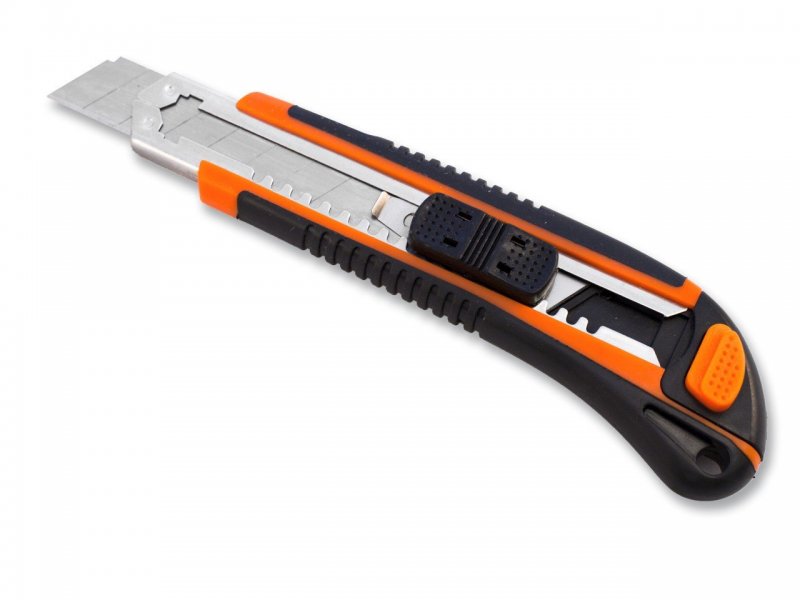 Разрезают гипсокартон по предварительной метке. Сначала по линии проводят ножом под линейку с усилием, чтоб загнать лезвие на 2-3 мм, затем отламывают часть элемента. Для получения ровного края картон с другой стороны обрезают и зачищают место среза наждачной бумагой.