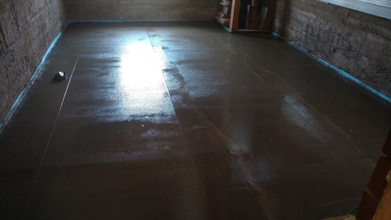 Процесс укладки повторяют пока весь пол не окажется залитым. Чтобы избежать трещин и стыков при высыхании, процесс заливки выполняют в одном помещении за один день. Ходить по полу уже можно будет через 2 суток.