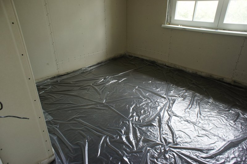 Начинать ремонтные работы следует с тщательной подготовки основания. Уборка помещения подразумевает удаление остатков шпаклевки с помощью шпателя и молотка. Мелкий мусор надо вымести. Если предполагается укладка слоя теплоизоляции, минимальными процедурами можно ограничиться.
