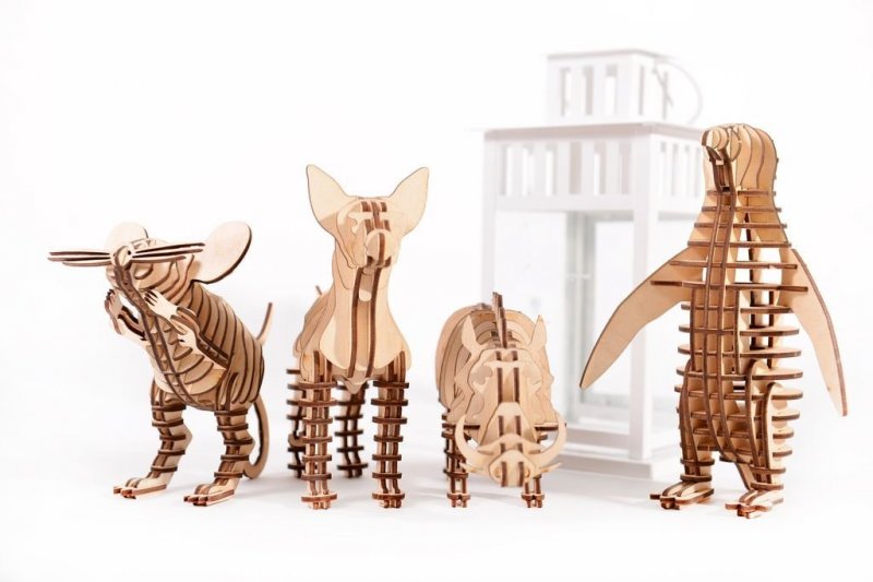 Возможности фанеры в деле украшения интерьеров просто безграничны. И это доказывает множество скульптур, изготовленных из этого материала. Это настоящие 3D модели различных животных, птиц и даже человека. Конструкция состоит из множества мелких деталей. Объединяясь в единое целое, они образуют самые разные формы. Данная техника позволяет создавать разнообразные модели устройств – автомобилей, кораблей или самолетов, практичные и полезные аксессуары, мебель. В продаже представлен широкий выбор наборов с готовыми деталями. Такие комплекты различаются по степени сложности – есть простые варианты для детей и хитроумные конструкции для взрослых. При желании можно своими руками создать оригинальное и неповторимое изделие, которое будет только у вас.