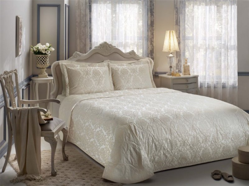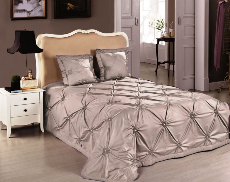 Стеганое покрывало станет настоящей «изюминкой» спальни, оно оригинально, самобытно. Идеальный материал для него – шелк либо атлас.
