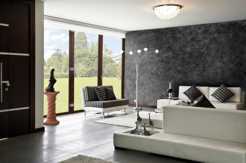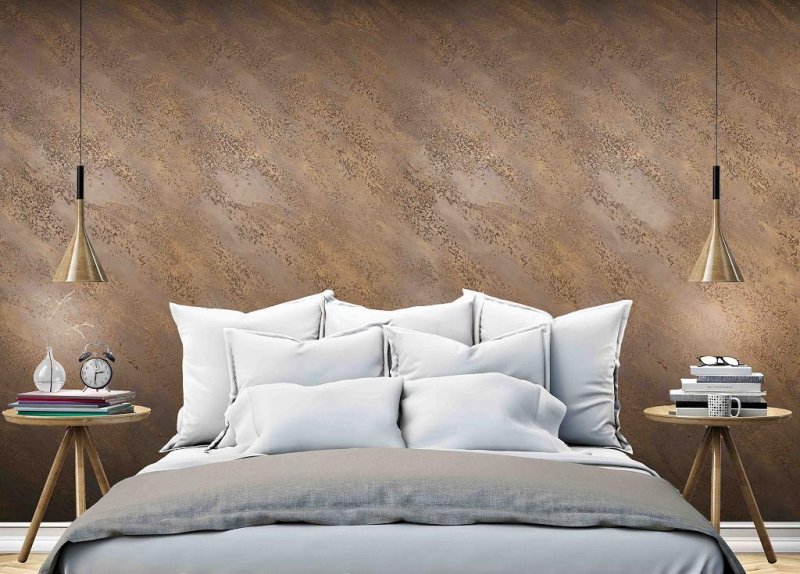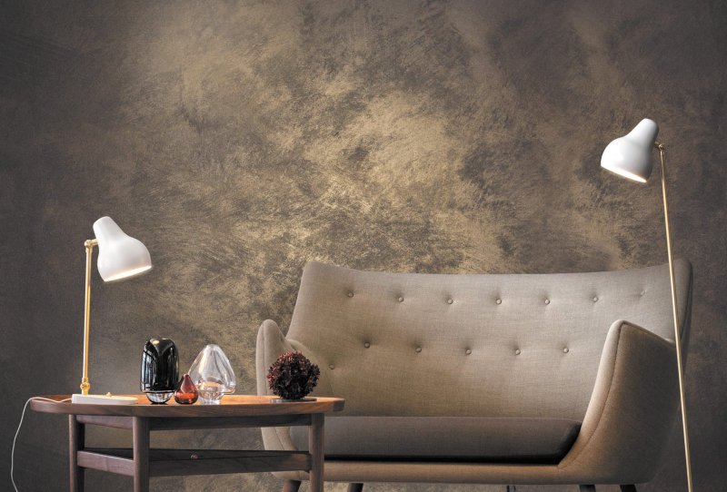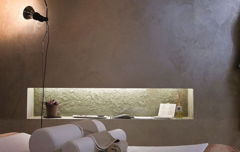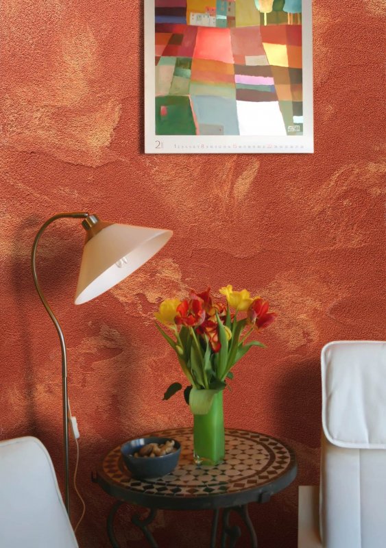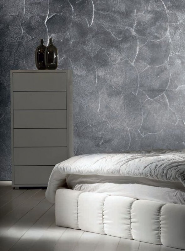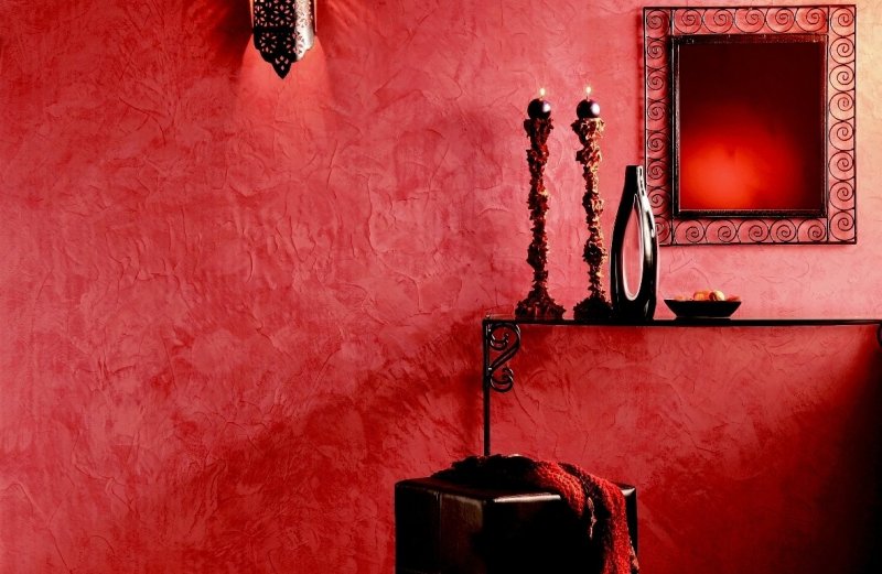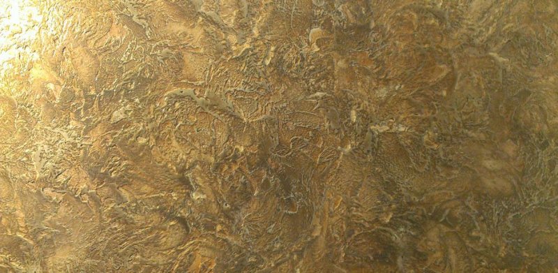 «Атакама» выходит самой шероховатой, так как имеет в составе кварцевый песок. Плоскость, оформленная данным материалом, блестит, как металл, старое зеркало, лист стали, переливается под воздействием освещения.