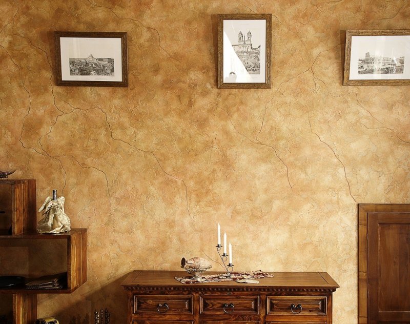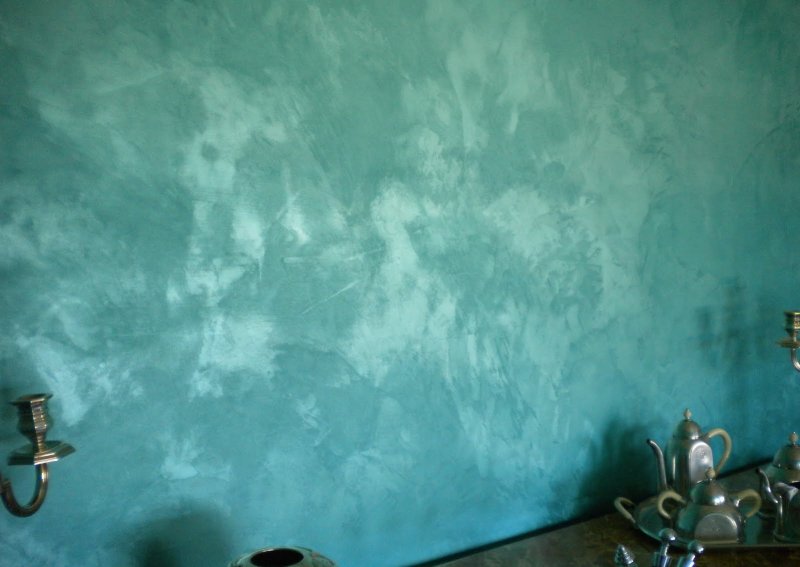«Марсельским воском» называют красящие смеси с восковым наполнителем. Когда поверхность готова, она напоминает состаренный, но блестящий камень, с характерными светлыми, темными фрагментами. Покрытие отлично защищает от испарений, излишней влажности, подходит для оформления элитных, роскошных помещений.