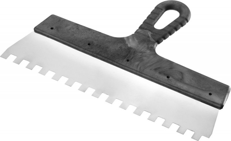 Чтобы раствор вышел максимально однородным, без крупных комочков, его перемешивают. Это производится при помощи строительного миксера или специальной насадки на дрель. Перемешивать нужно не менее 7-10 минут. Когда нанесение производится шпателем большого размера, валиком, часть состава для удобства переливают в широкую ванночку. Если в состав красителя введены полимерные или любые другие частицы, имеющие диаметр полтора-два, более мм, для нанесения применяют резиновый шпатель – ровный или с частыми узкими зубчиками.