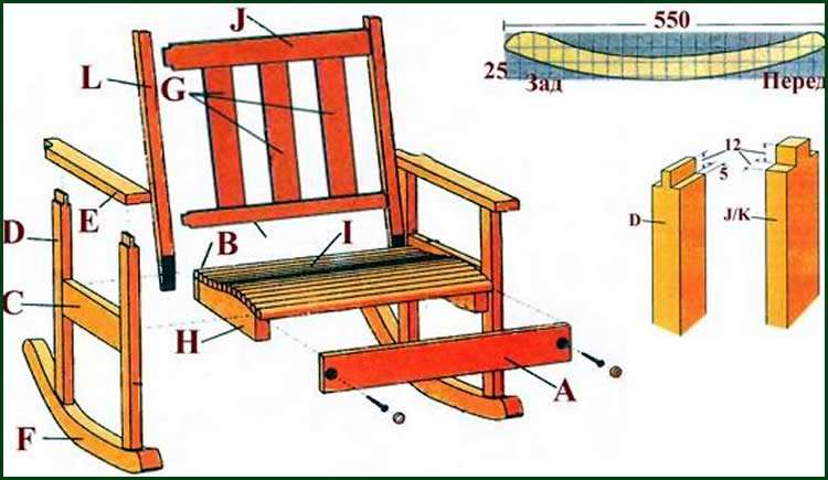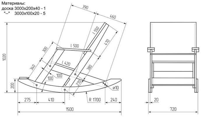 При изготовлении кресла-качалки главное – все хорошо рассчитать, произвести тщательные замеры, выполнить максимально точные чертежи по ним. Если имеются несоответствия, баланс нарушится, изделие выйдет перекошенным, будет опрокидываться набок.