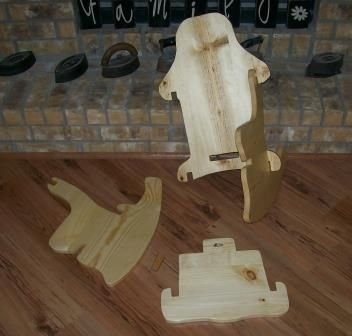 Детское кресло-качалка – это скорее игрушка, а не место для отдыха. Оно выполняется из фанеры и не должно быть чрезмерно тяжелым, чтобы малыш сам смог переставлять его. Предмет состоит из спинки, двух боковин, сидения, а в передней части приделывается голова коня с небольшой перекладиной сверху, чтобы можно было держаться, и снизу – для упора ногами. Сидушку обивают мягкой тканью, поролоном, деревянные части окрашивают вручную.