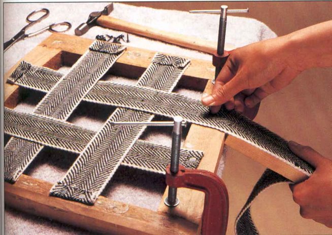 Натягивается мебельная ткань так, чтобы не образовывались морщины, но если неровности возникли уже в период эксплуатации отреставрированного изделия, их легко убирают, слегка подтянув материал наизнанку.