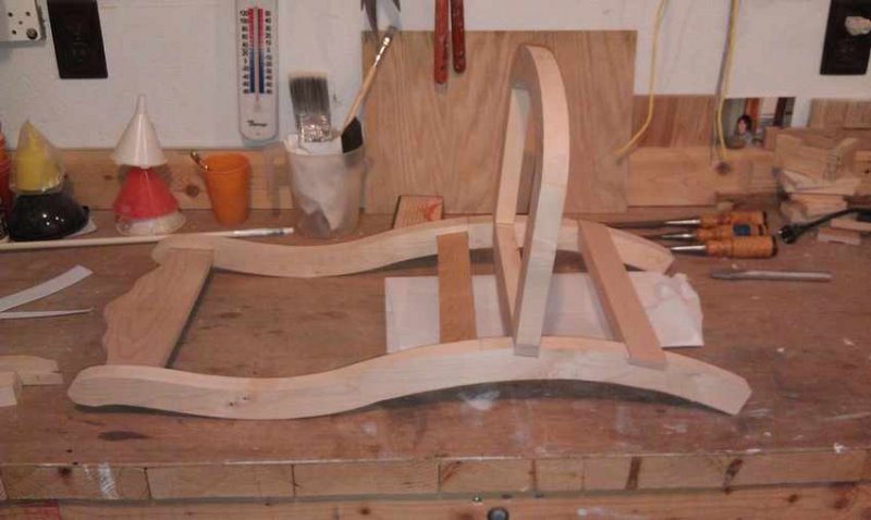Чтобы создать красивое кресло-качалку, вначале делается рисунок задуманного, по нему – разрабатывается чертеж. Далее подбираются все необходимые инструменты, материалы, вырезаются детали будущего изделия. После конструкция собирается, производится его финишная отделка, просушка.