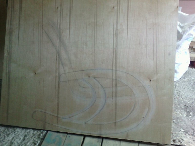 Чертеж переносится на бумагу, вырезается лекало, по которому контуры наносят на толстую фанеру (не менее 30 мм) и выпиливают лобзиком. Обе боковины делаются полностью идентичными, не имеют острых углов. Царги выполняют из бруса, как и детали сидения, спинки. Размеры трех перекладин – 12 на 12 на 75 см, ламелей – 5 на 2,5 на 75 см. Последних потребуется 35-37 штук в зависимости от того, на каком расстоянии друг от друга они разместятся.
