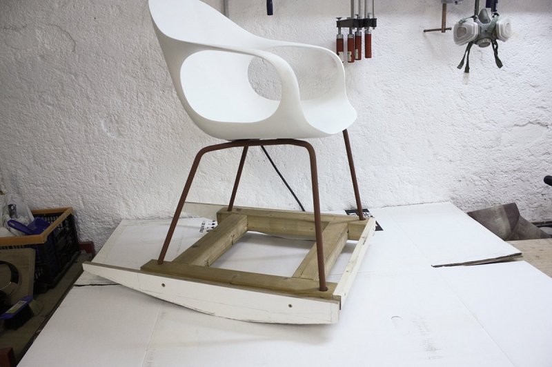 Для «тестирования» кресла, на нем достаточно посидеть пару минут, покачаться. Если возникают проблемы с устойчивостью предмета, их сразу корректируют. Когда предмет падает назад, утяжеляют переднюю часть, если наоборот – укрепляют задний свес, объединяя полозья дополнительной перекладиной.