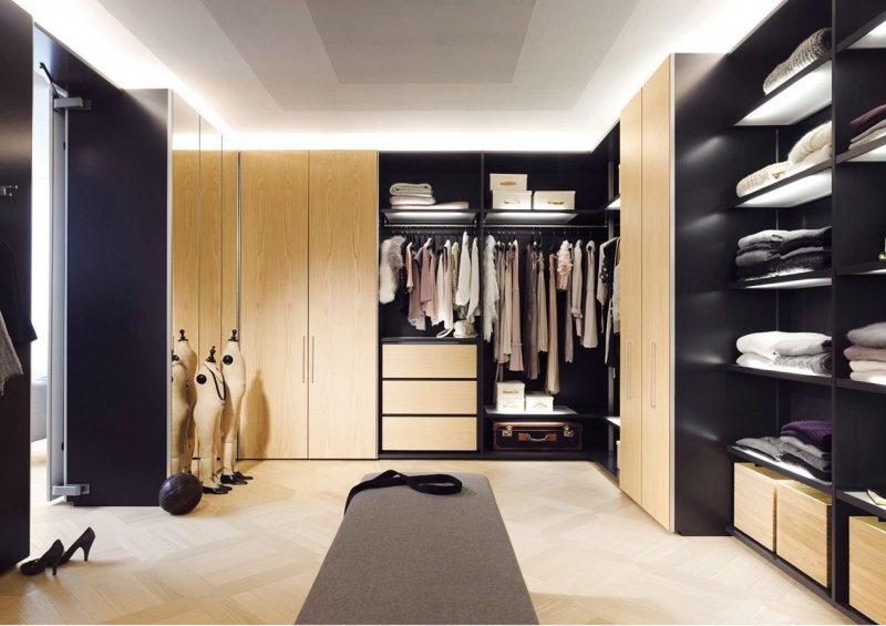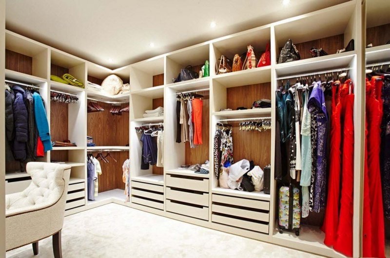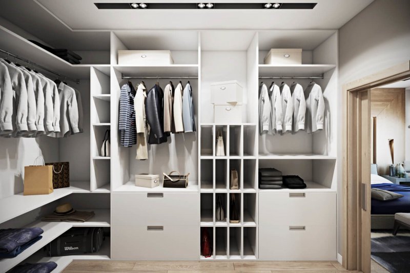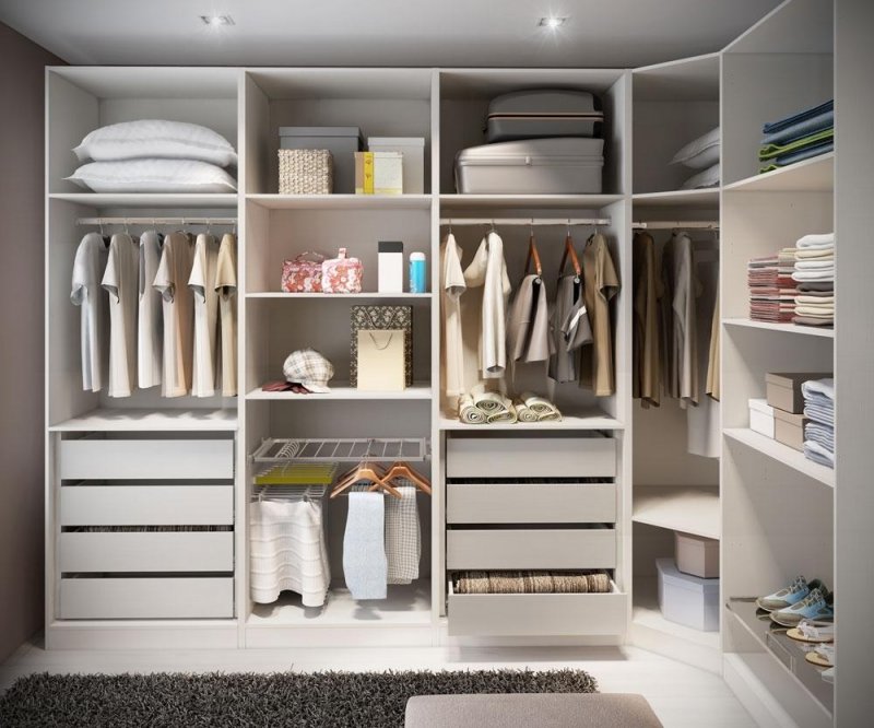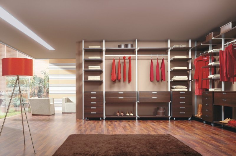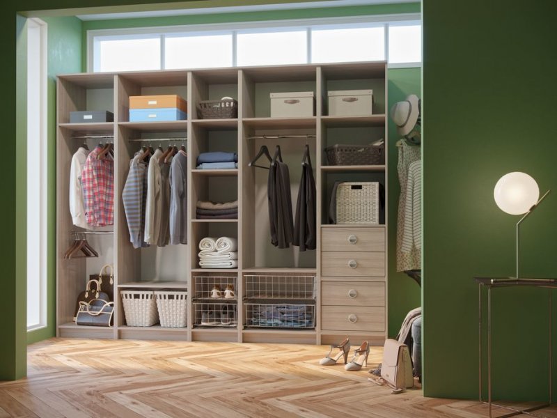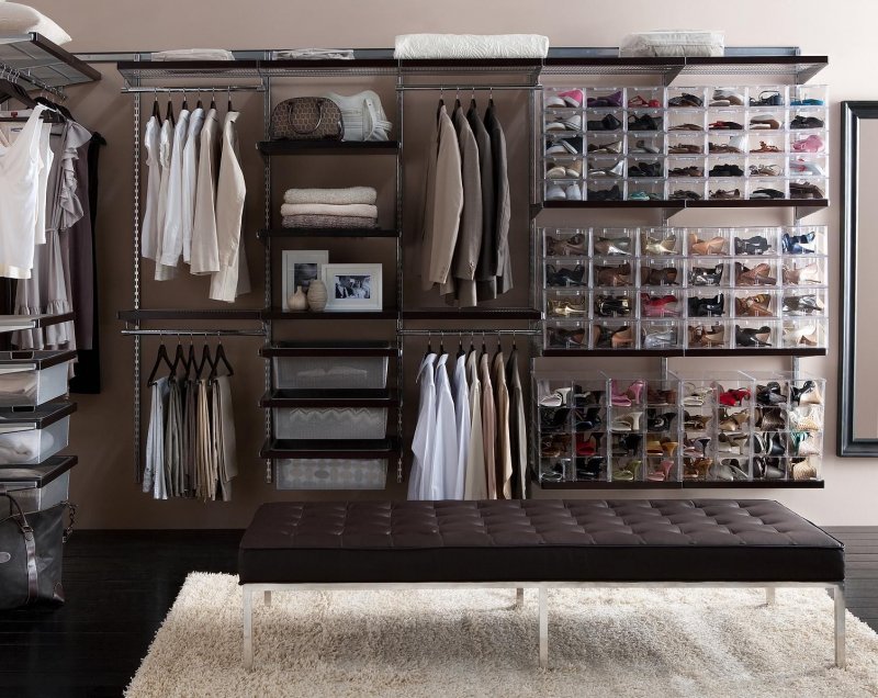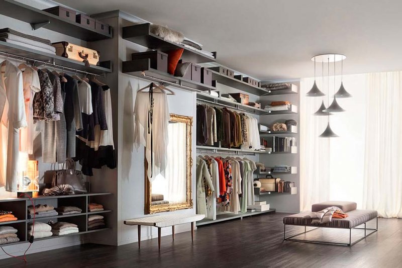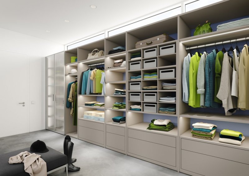 Системы хранения могут быть самостоятельными элементами или целым комплексом. Идеальный вариант для организации гардеробной – отдельная комната. Но если такой возможности нет, можно воспользоваться переносными мини-вариантами, модульными конструкциями. Правильно расположенные стеллажи, шкафы, ячейки позволяют систематизировать одежду, разделяя ее по сезону, половой принадлежности, назначению.