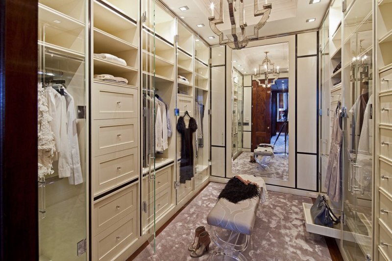 Дополнять систему хранения зеркальными, стеклянными конструкциями надо только, если есть необходимость в визуальном расширении пространства. Хрупкие элементы требуют бережного отношения и специальной фурнитуры.