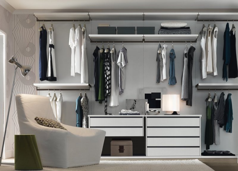 Гардеробные системы хранения представляют собой набор полок, стеллажей, штанг и прочих элементов для складирования одежды. Правильно скомбинированные компоненты позволят организовать удобную комнату с функциональной мебелью. При выборе готовых комплектов необходимо обратить внимание на следующие факторы: