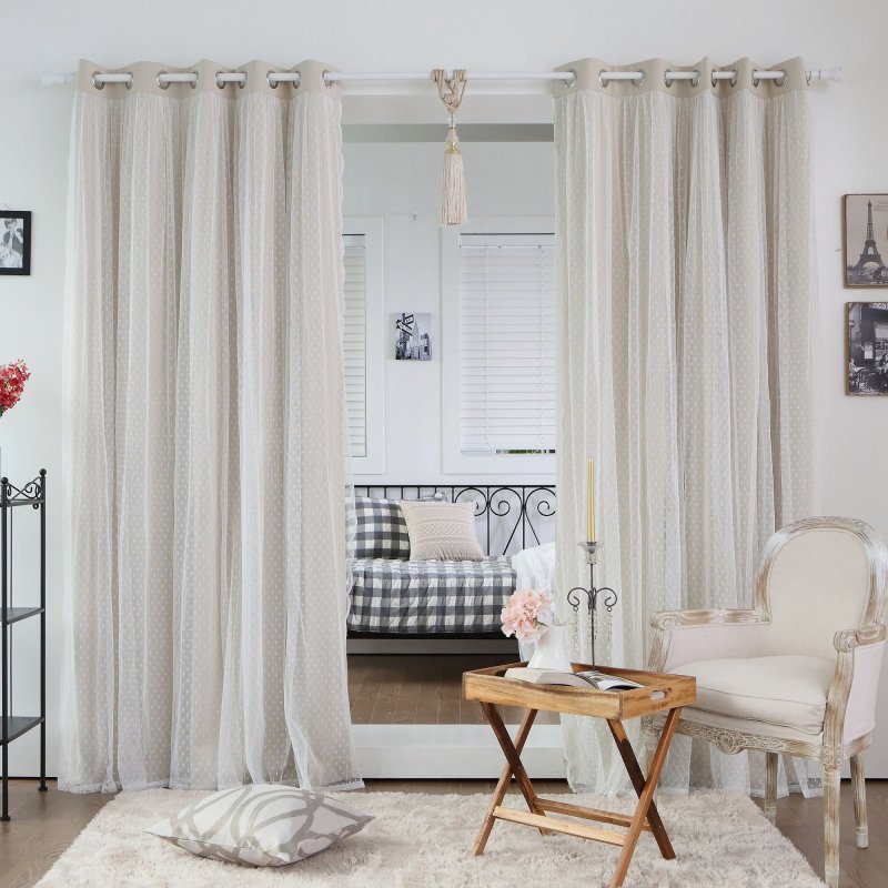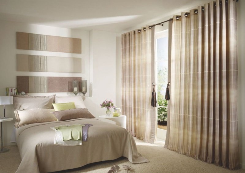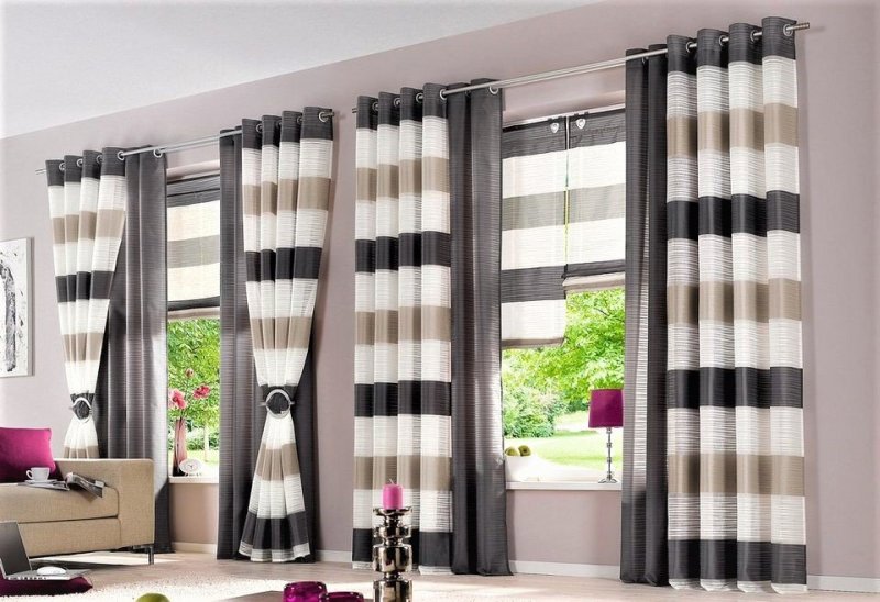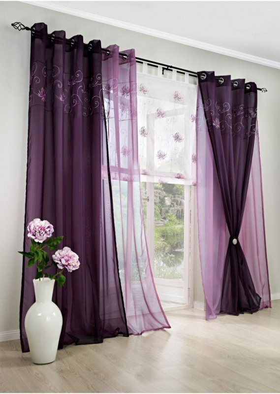 Конструкция изделия очень проста, но замечательно смотрится в любой комнате. Важно правильно подобрать материал – полупрозрачный сделает пространство легким, воздушным, более тяжелый – защитит от солнечных лучей, посторонних взглядов с улицы. Также допустимо использовать нитяные, многослойные занавески, различной степени плотности. Строгие вертикальные линии, образующиеся на подвешенной драпировке, отлично вписываются в разные интерьерные стили.