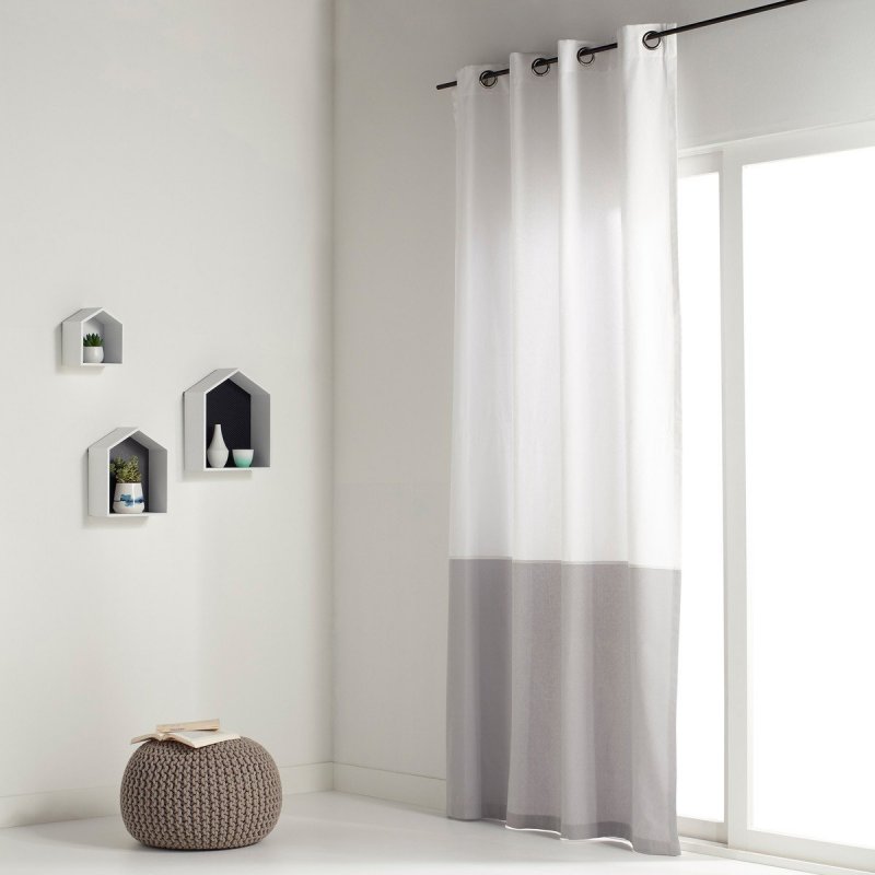 Занавеска на люверсах представляет собой прямое полотно, примерно соответствующее высоте комнаты (или только самого окна), двойной ширине оконного проема. Сверху изделие уплотнено широкой тесьмой, имеющей отверстия, в которые аккуратно вставлены кольца. Последние делаются любого размера – внутренний диаметр должен быть немного больше, чем трубообразный карниз, на который подвешивается занавес. Круглые детали располагаются на одинаковом расстоянии друг от друга, когда штора подвешена, она драпируется идеально ровно, образуя красивые фалды-складки.
