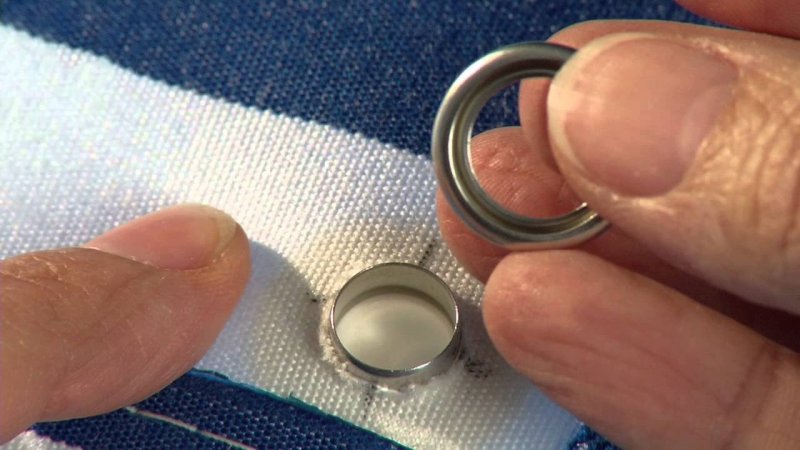 Если вышло так, что люверс поставлен криво, его снимают, аккуратно переустанавливают. То же самое проделывают, если во время стирки деталь оторвалась.