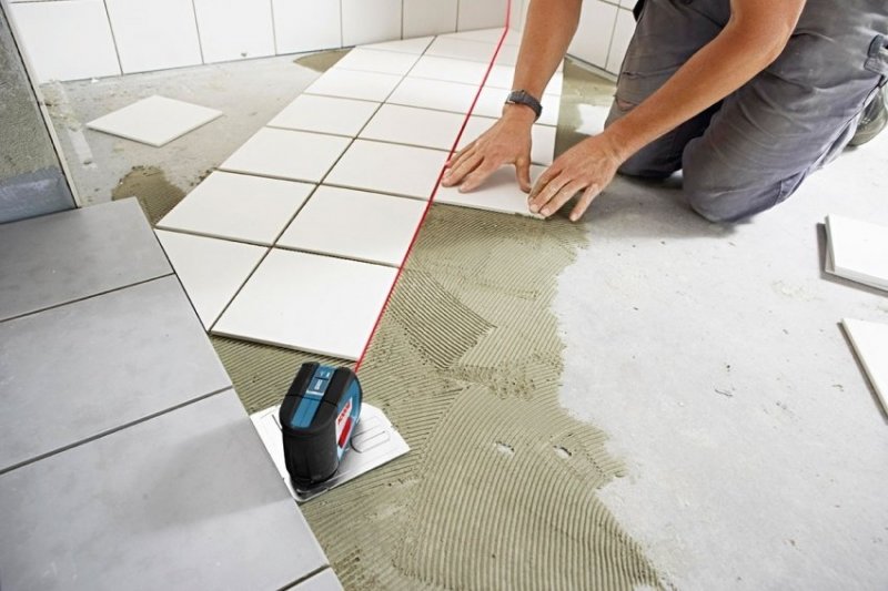 Специалисты рекомендуют начинать укладку плитки от центра, а не от стен, поскольку так можно минимизировать вероятность погрешностей. Для выполнения разметки пола лучше использовать лазерный уровень. С его помощью можно начертить достаточно точных линий, не перемещая прибор.