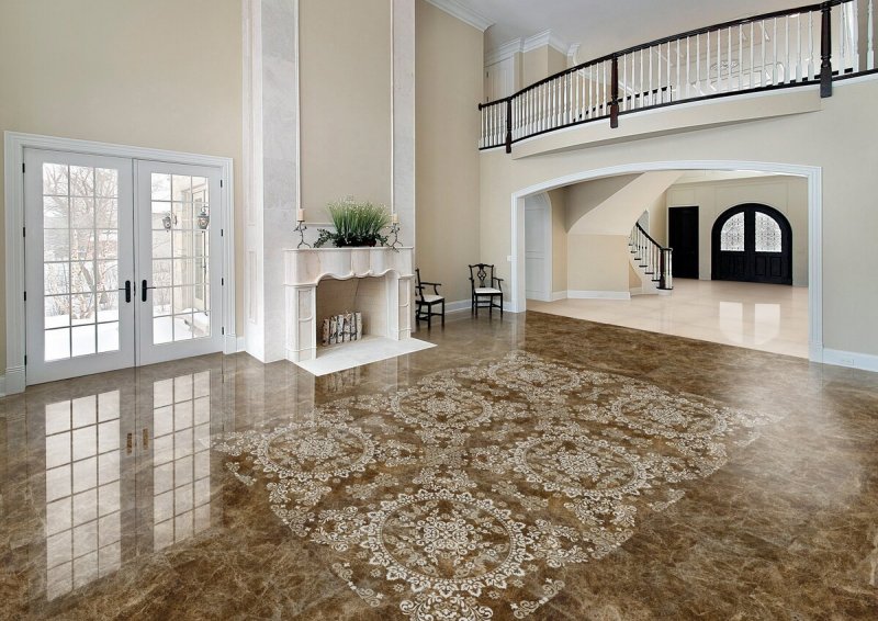 Реализовывать подобные проекты лучше в помещениях большой площади. Подходящей будет любая комната. Но лучше кафельный ковер будет смотреться, не заставленный мебелью, половиками, цветами, различным напольным декором.