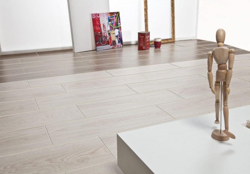 Чтобы пол визуально выглядел деревянным, надо выбирать прямоугольную плитку со структурированным рисунком натурального материала. Отсутствие глазурованной поверхности сделает сходство максимально точным.