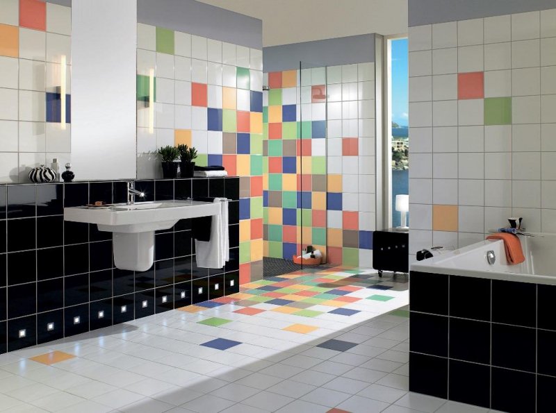 Чтобы кладка имела оригинальный вид, используют плитку разных цветов. При проведении работ необходимо выкладывать длинные или короткие детали максимально ровно, поскольку даже малейшие недочеты будут бросаться в глаза. Традиционный способ подходит для бесшовной керамики, его используют при выкладке покрытия в ванной, туалете, на кухне.