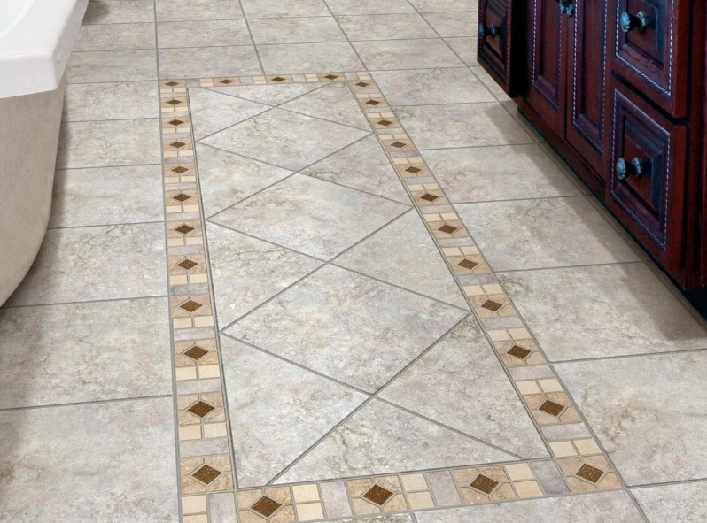 Простой способ является лучшим вариантом для тренировок работы с напольной плиткой. Рисунок из нескольких модулей разного размера смотрится интересно и оригинально. Он будет отлично выглядеть в комнатах маленького размера.